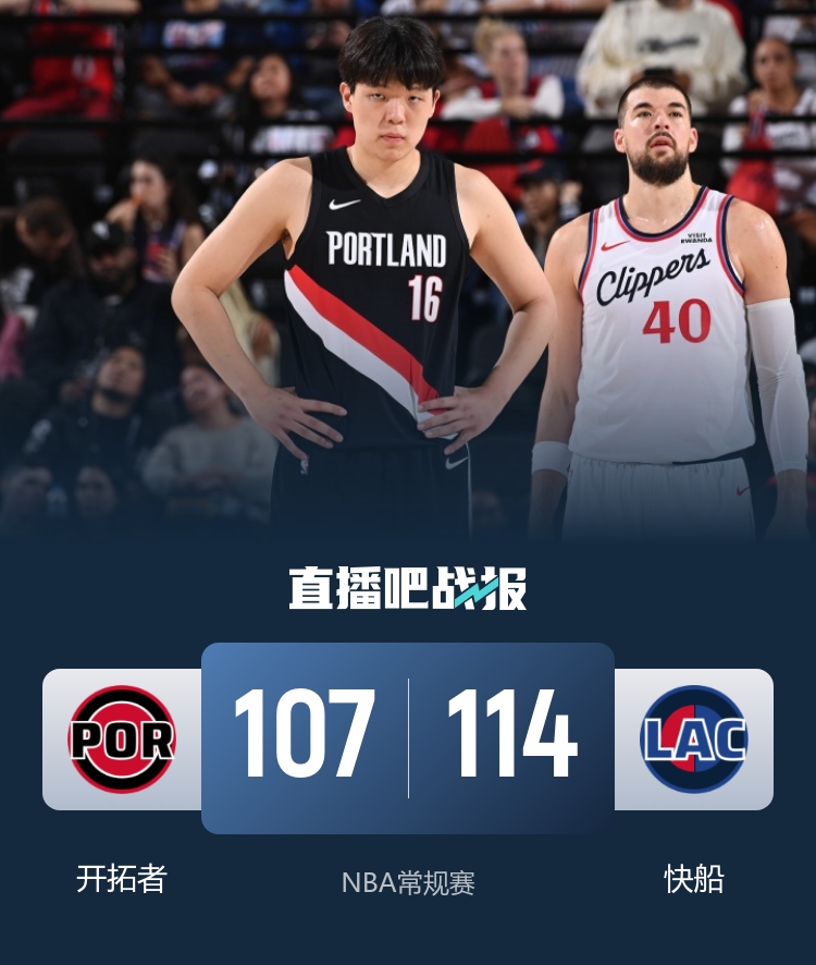 杨瀚森4分20秒2分1板 开拓者不敌快船 小卡30+10 哈登20+6+13