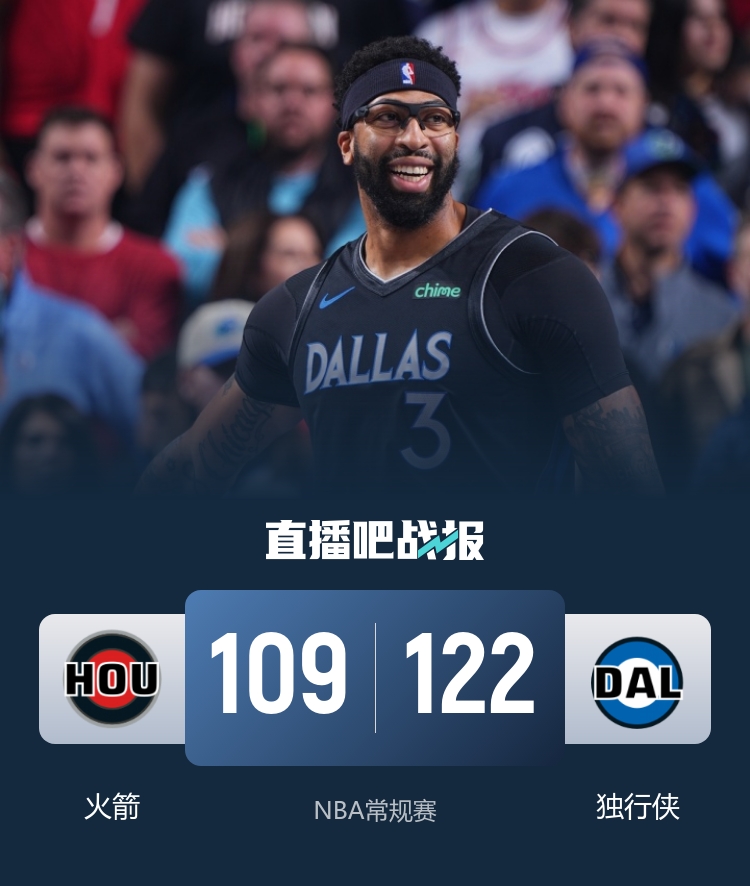 火箭不敌独行侠 杜兰特27分 阿门11中2&6失误 浓眉29+8