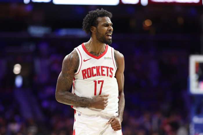 NBA常规赛,火箭主场117-95大胜老鹰。