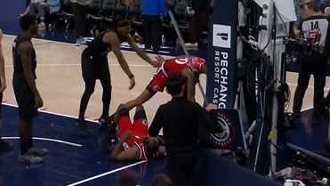 第三节比赛,杰明犯规同时保护哈登,但随后科林斯与曼陷入小冲突。