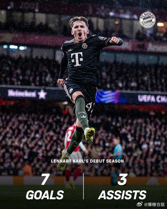 【#生日球星#】拜仁小将卡尔在昨天年满18岁,据悉他的合同将自动转为职业合同,延长到2029年夏天,年薪为税前2M欧元+浮动奖金,并且拜仁正在考虑给他一份更好的合同,税前年薪达到5M-8M欧元,以奖励他处子赛季的精彩表现。